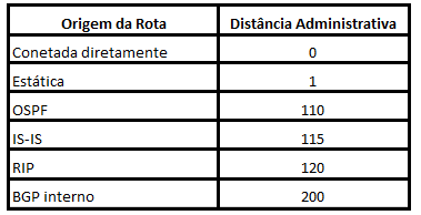 Distâncias administrativas do OSPF
