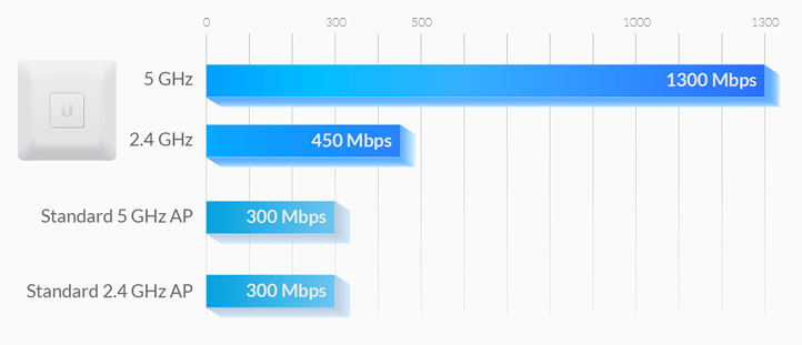 UniFi AC oferece até 1.3 Gbps de Data Rate.