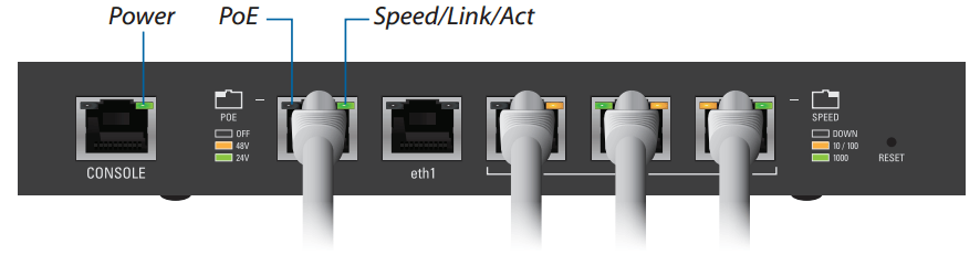 Uma das grandes vantagens do Edge Router, é o recurso de alimentação pelo padrão PoE, onde terá condições de energizar até 5 equipamentos pelo número de portas/interfaces existentes.