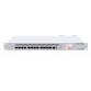 Suporte para fixação em rack de 1U, 12x slots SFP, 1x slot SFP+, 16 núcleos x CPU de 1,2 GHz, 2 GB de RAM, painel LCD, dupla fonte de alimentação, RouterOS L6.